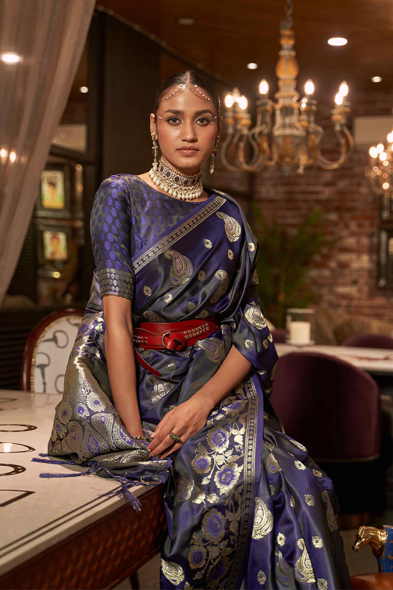 Lilac Lavender Banarasi Tissue Woven Silk Saree with Copper Zari