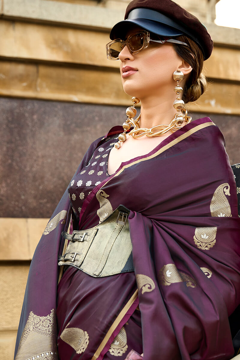 Matterhorn Purple Banarasi Satin Silk Saree