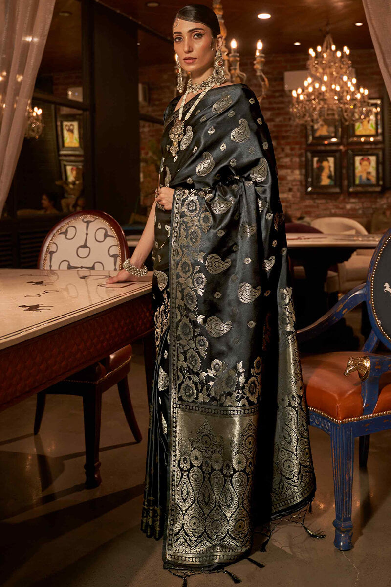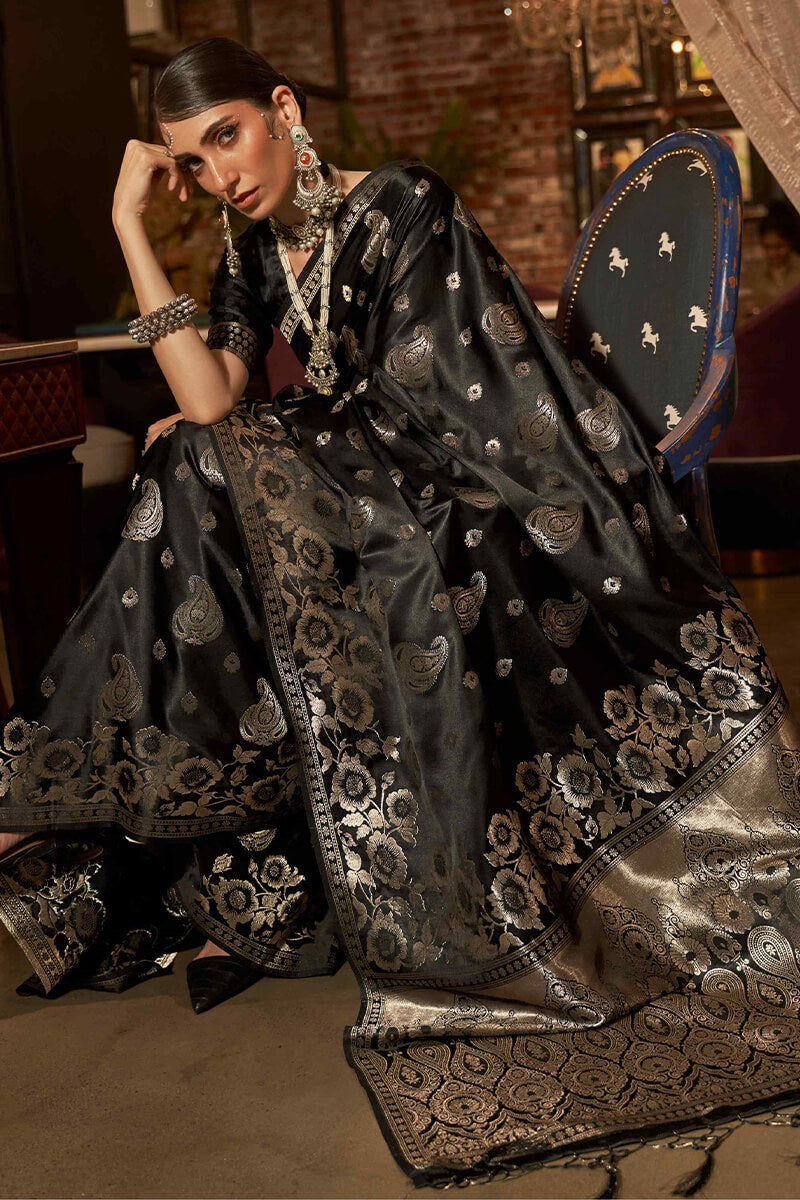 Black Designer Soft Silk Chiffon Saree With Fancy Work