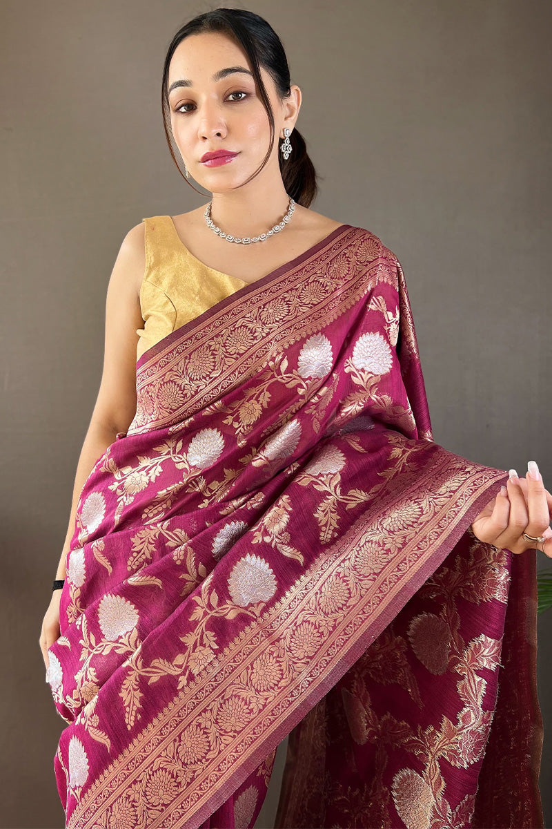 Magenta Banarasi Royal Wedding Edition Silk Saree with Zari Work