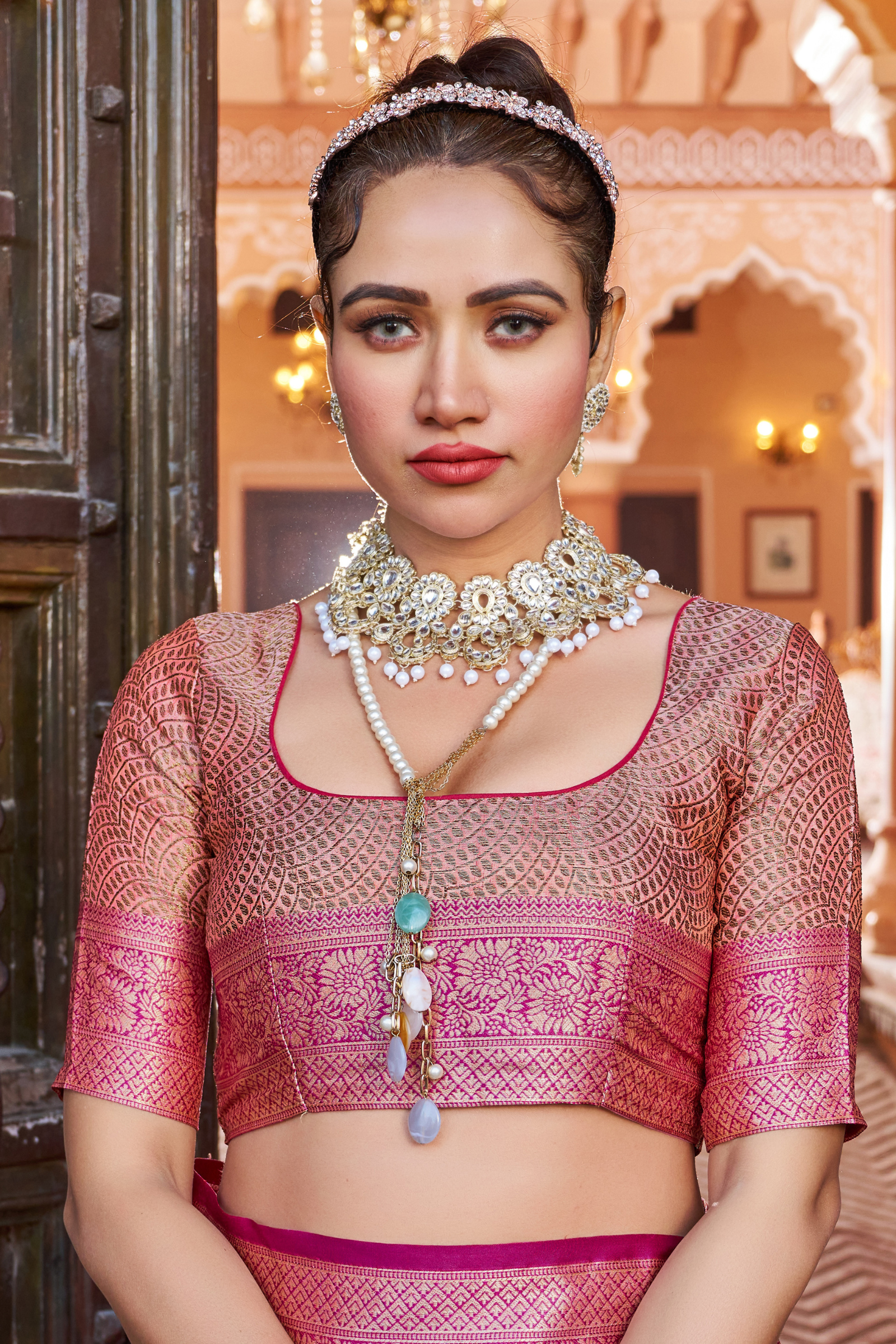 Pink Banarasi Pure Satin Silk with Graceful Zari Work Border