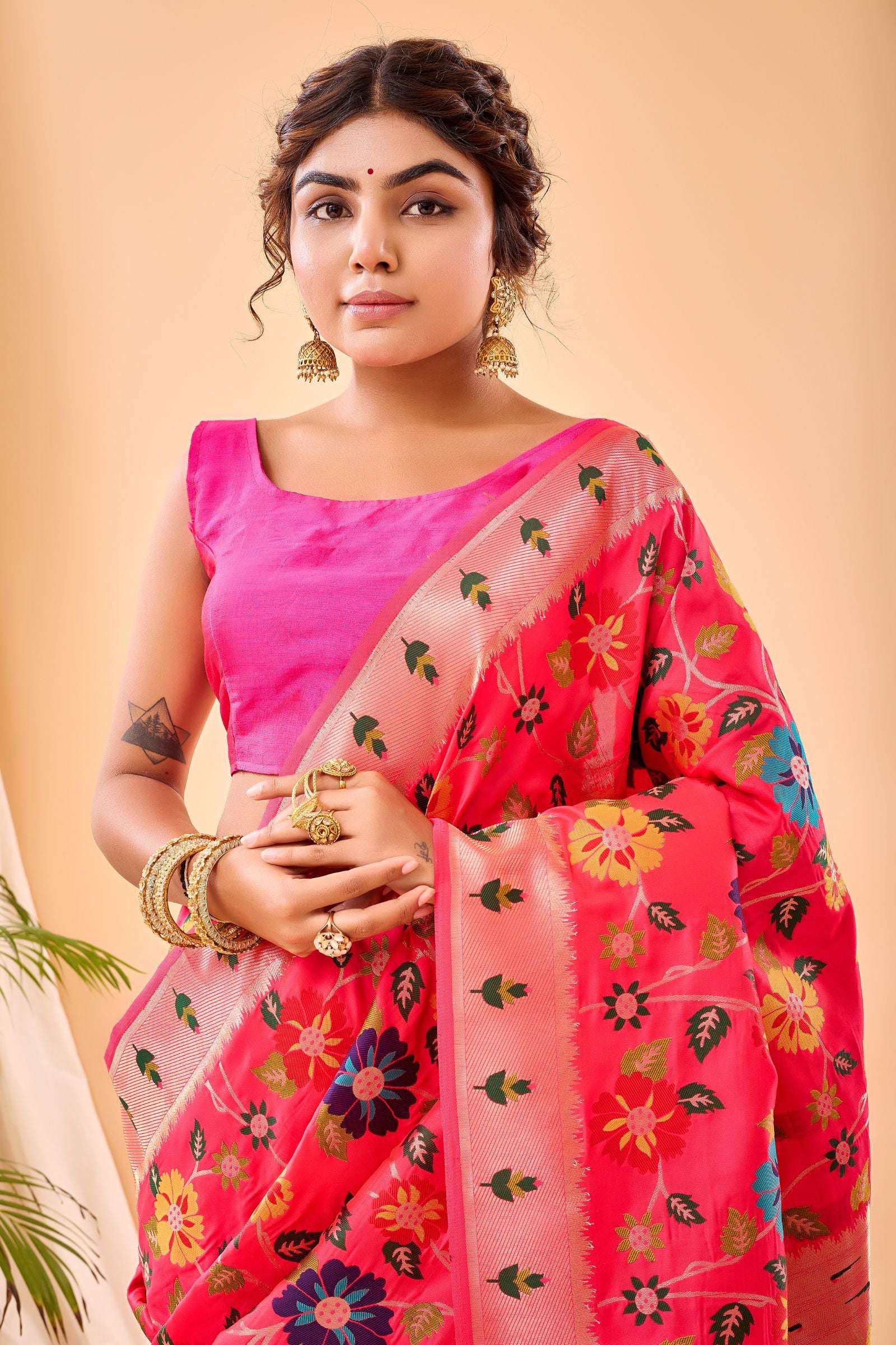 Brilliant Rose Pink Banarasi Silk Saree