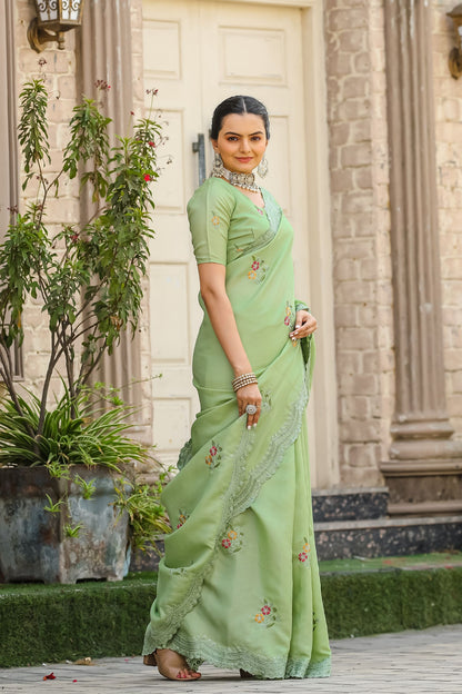 This saree is everything I hoped for and more. The grey color is versatile and the embroidery is exquisite. It drapes beautifully and feels incredibly soft. I've received countless compliments and I’m so happy with this purchase.✨