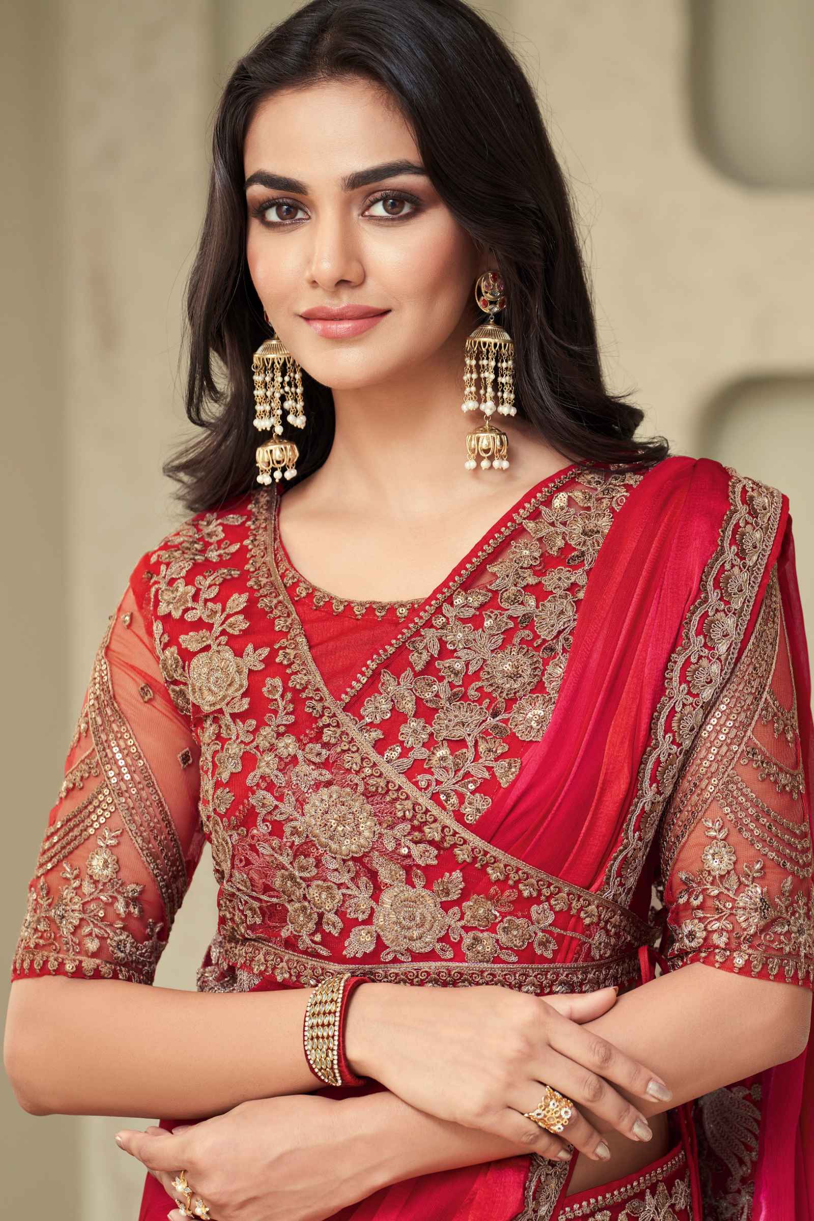 Red Glorious Silk Saree With Embroidery Work