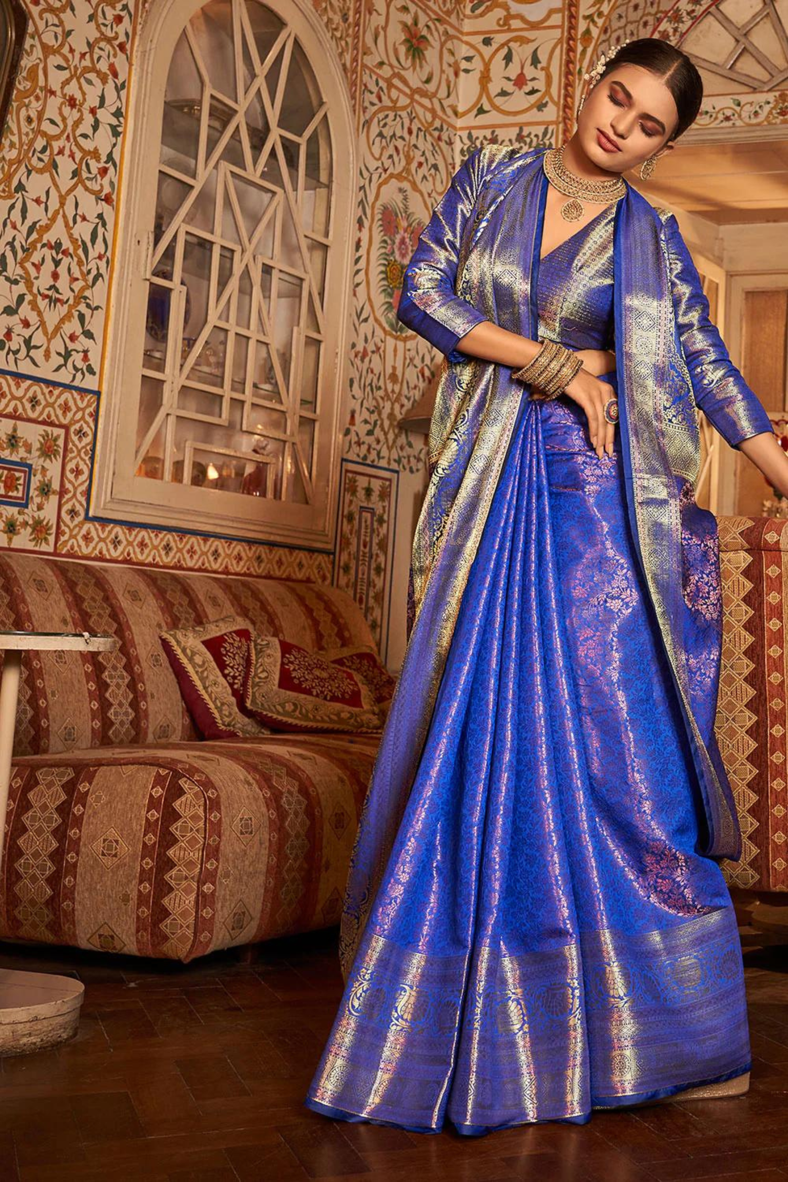 Royal Blue Pure Kanjivaram Silk with Bronze Zari Weaving