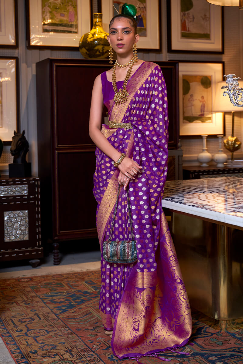 Royal Purple Copper Zari Woven Banarasi Silk Saree