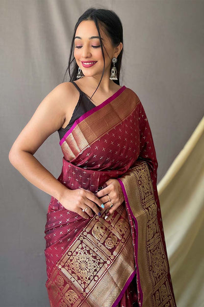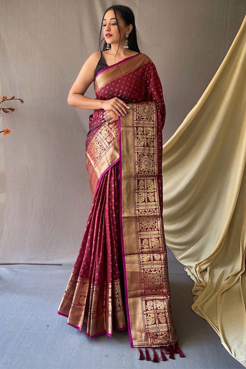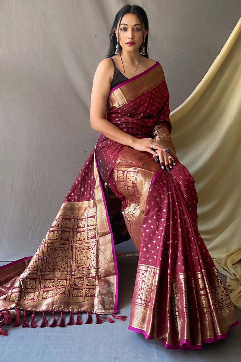Ruby Maroon Banarasi Silk Saree