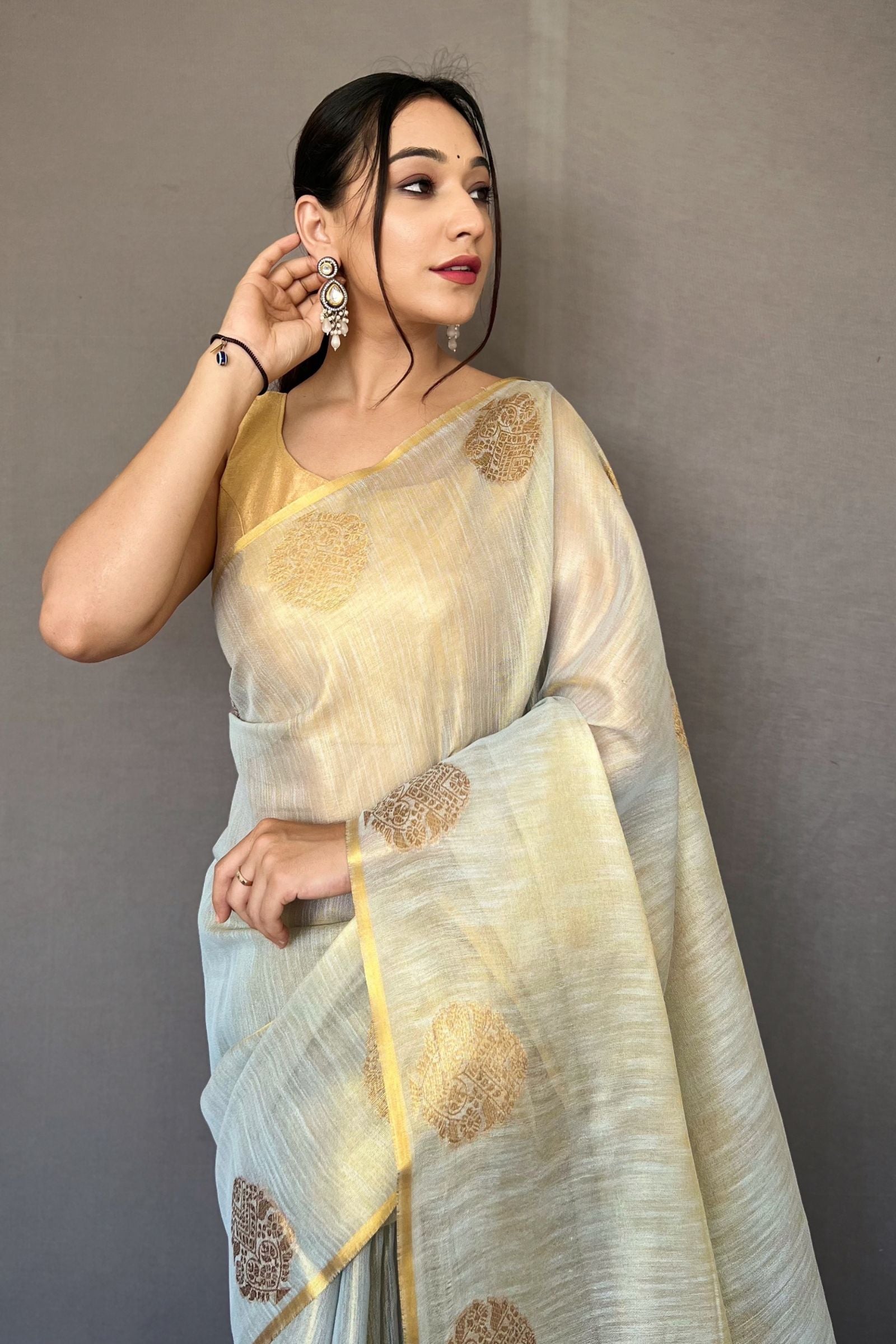 Golden Yellow Banarasi Tissue Woven Silk Saree with Copper Zari