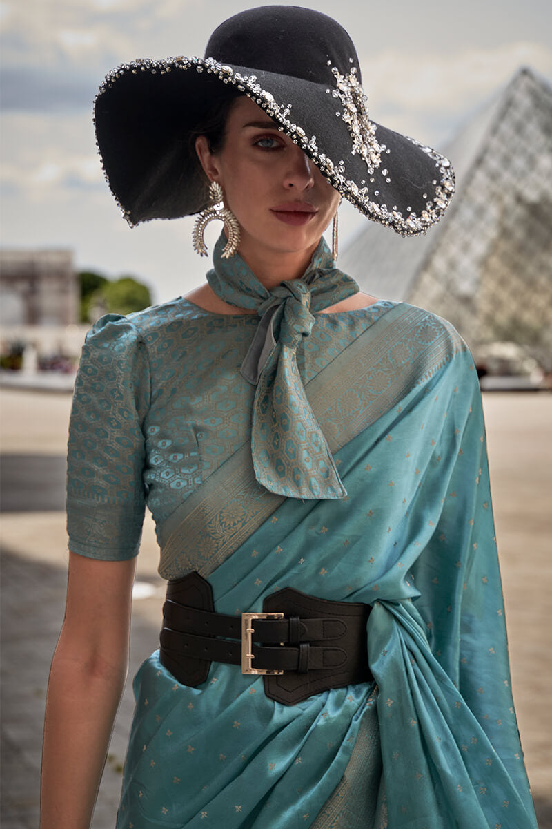 Smalt Blue Zari Woven Banarasi Satin Silk Saree