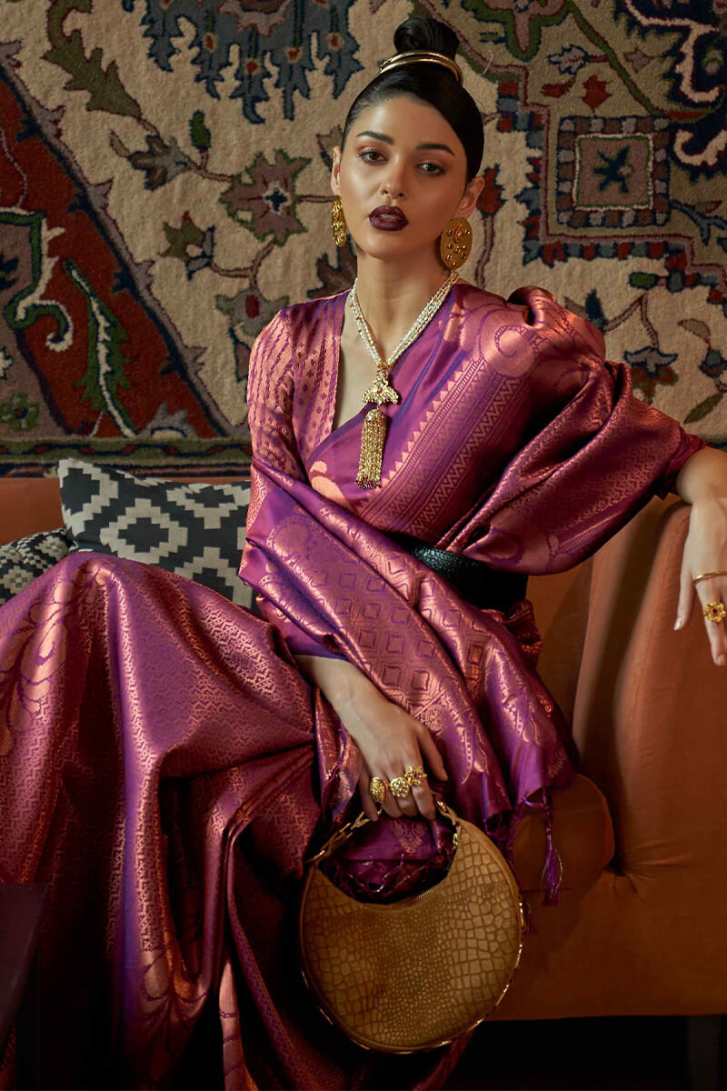 Tamarind Purple Copper Zari Woven Kanjivaram Silk Saree