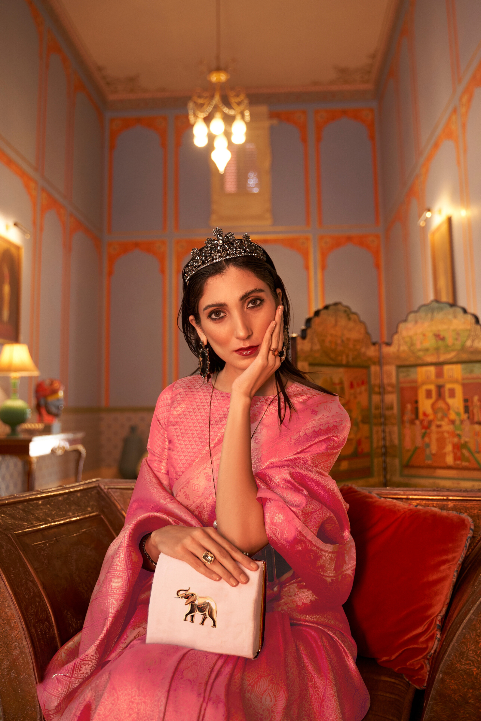 Pink Banarasi Pure Satin Silk with Graceful Zari Work Border