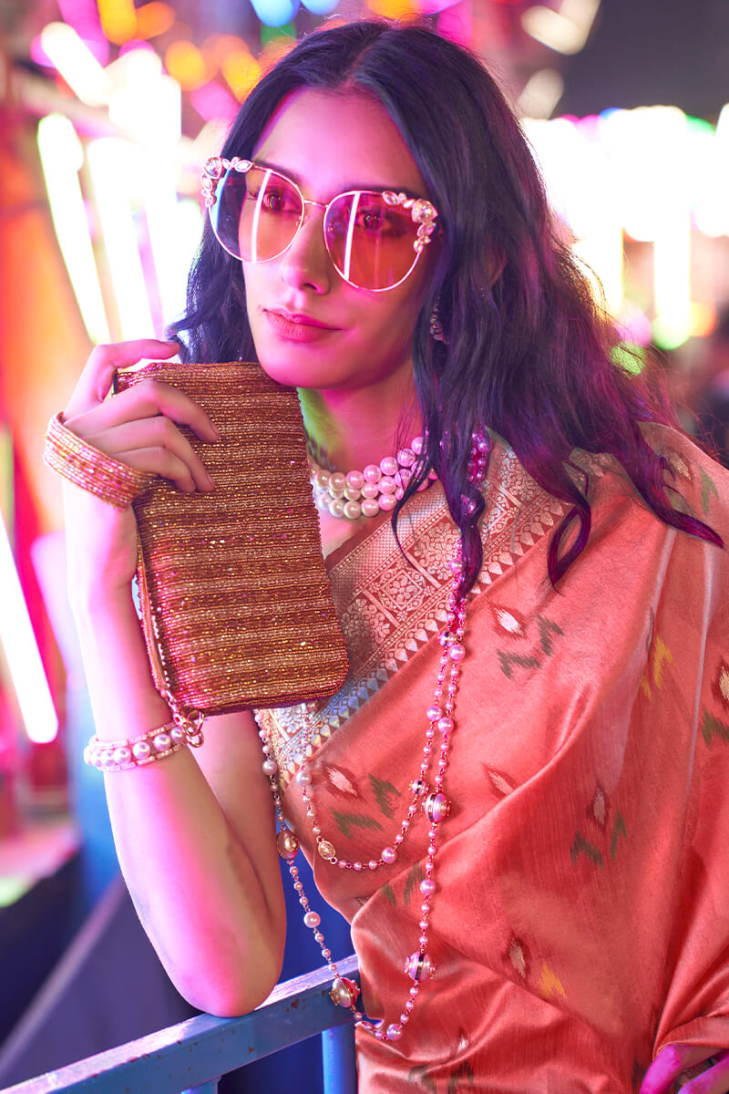 Brownish Pink Gota Zari Woven Banarasi Silk Saree